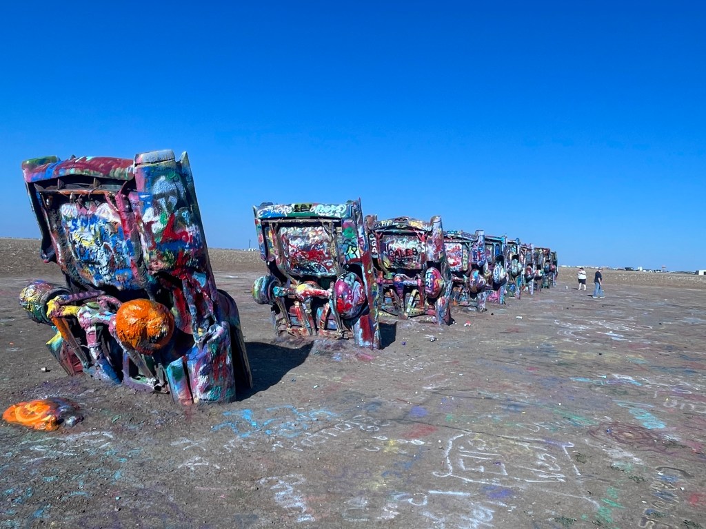 Our last stop as we headed out of Teas was the iconic Cadillac Ranch. It is an art exhibit installed in 1974 by an oil tycoon and over the years the cars have been graffitied and repainted but now that the daughter that owns it simply let’s the graffiti remain as part of the exhibit. One of the cars was even set on fire in 1991, however, all 10 cars remain. Thanks Texas and we’ll see you next time!
