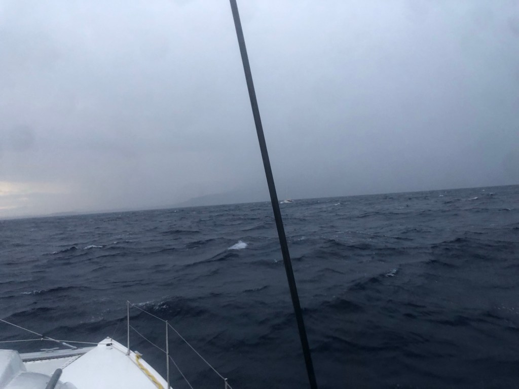 Day two does not really change much, bashing into the wind and waves we make progress as fast as we can, to attempt to make landfall in PR. With the shift in the wind to a more north easterly direction we have to drive ourselves more south to make progress. This in theory is a great decision, since it shortens our trip and gets us below the front and its squall potential…or so we thought. As the day wears on Sally and I do watch shifts, which are frequently interrupted by a squall that I should captain around. This was not ideal, but manageable since at any hour we will be south enough to out run the storms.