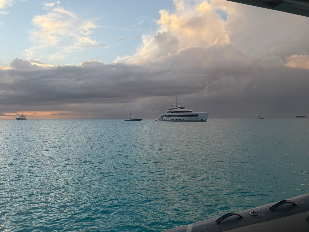 It was supposed to have some of the best snorkeling but sadly, not anymore. Most of the coral here has died and besides a couple of large lemon sharks and some pretty reef fish, there isn’t much to see. We still enjoyed a nice couple of days here even with the couple of megs-yachts and dozen other boats who joined us. The mega yachts were 200ish feet in length and liked to play their party music at night. One of our friends told us the base price for this type of charter was $325,000 plus all your provisions (Food & Alcohol) in addition to the crew and tip. This puts this charter vacation on the $500,000+ budget. Yikes. Guess we will stick to our little 40-footer.