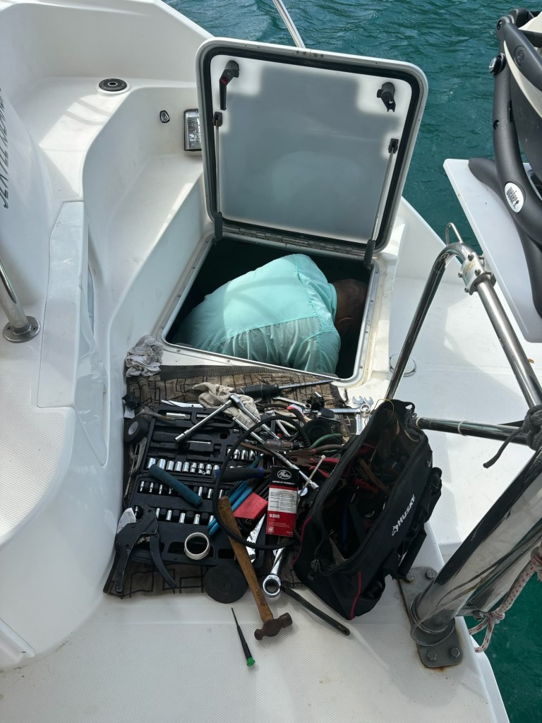 Luckily we were insured and that gave us a bit of comfort that we would at least be financially protected or so we thought. Let me outline the experience we had with a carrier that had a history of being a great company that was fair and would pay a claim quickly. While I was on the island, I planned to secure Mariposa the best I could and meet with the surveryor to asses the damage together. I will not get into to many details other then the surveyor was the least professional person I have ever met. He is staying in the bay on a 50 foot catamaran he chartered down and could only complain it did not have AC. Keep in mind no one on the island had a place to stay that had a roof, AC, or even drinking water was available. He was a peice of work. His survey process was to only take photos of what I pointed out as damage and then suggested the damage was minimal and fixable. The only really purpose of that trip was to actually check the manufacture dates of the fire extinshers to ensure that they were within a year old. That at first seems odd to me for a boat damaged by a hurricane. When I read through the insurance contract it states that they need to be replaced yearly or the contract could was not fullfilled and they would denign my claim. Lucky we just bought ours but seeing how they were only interesting in finding ways I was deficient in holding up my end of the contract made me uneasy for the rest of the process.