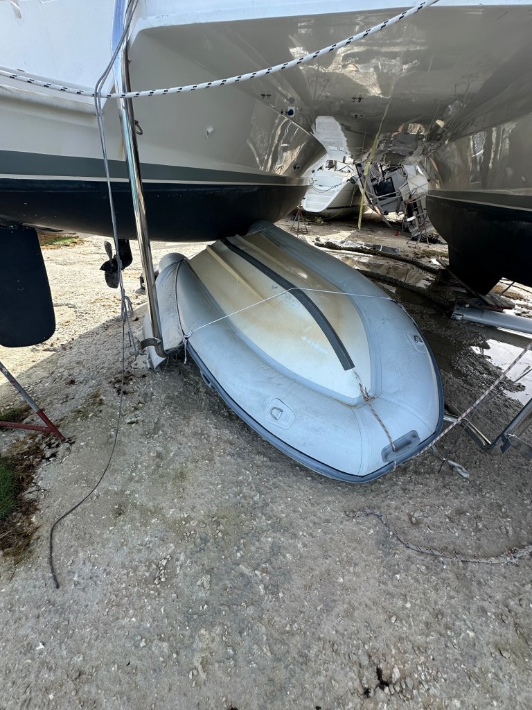 Day two on the island I starting to asses the extent of damage mariposa sustained. Not only did she loose her mast, but when the mast fell a 5 foot structural crack was created from the force of the mast falling on the super structure. This crack allowed seawater and rainwater to soak the structure of the boat. Once inside the boat I noticed that the keels substained major damage from the rocking back and forth during the height of the storm. While that is fixable, the incredible challange to fixing it on an island that has lost everything is a monster challenge. The dingy itself was ripped from the davits and layed under Mariposa in about a foot of sea water upside down completely destroying the engine. It did not look good.